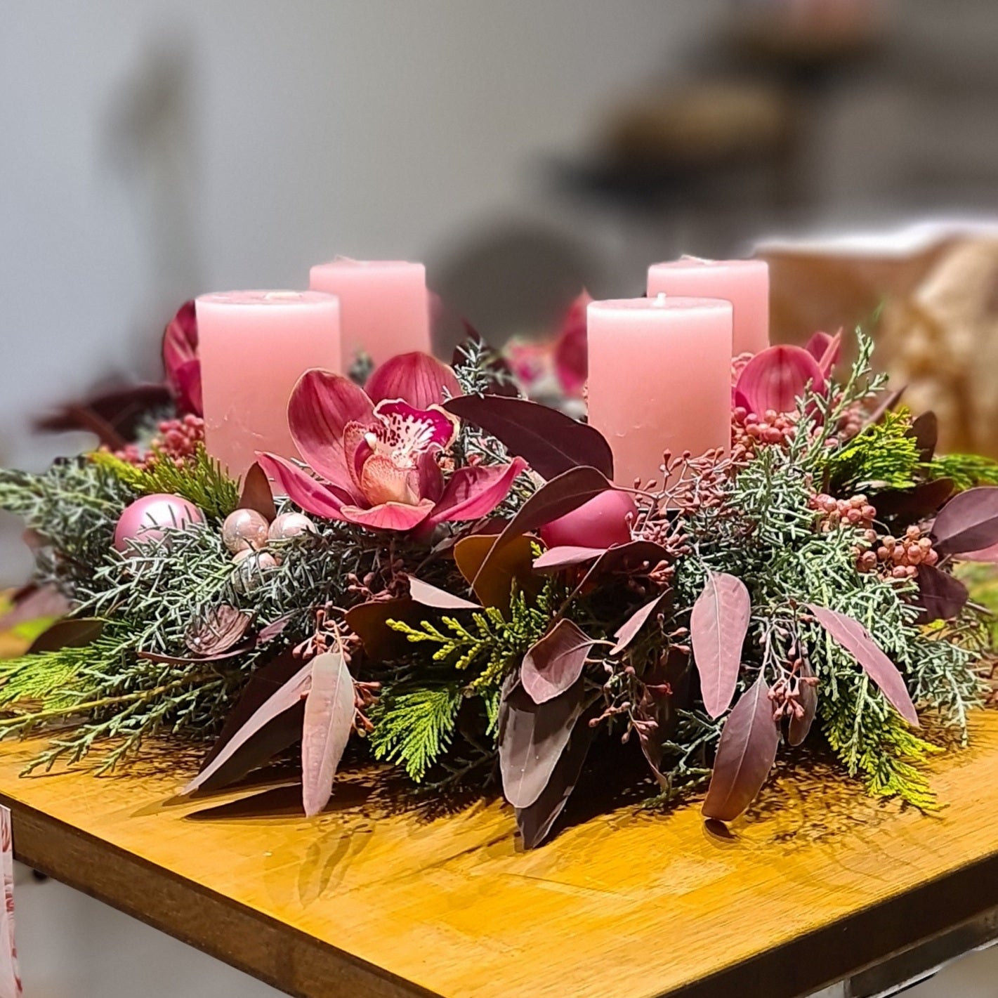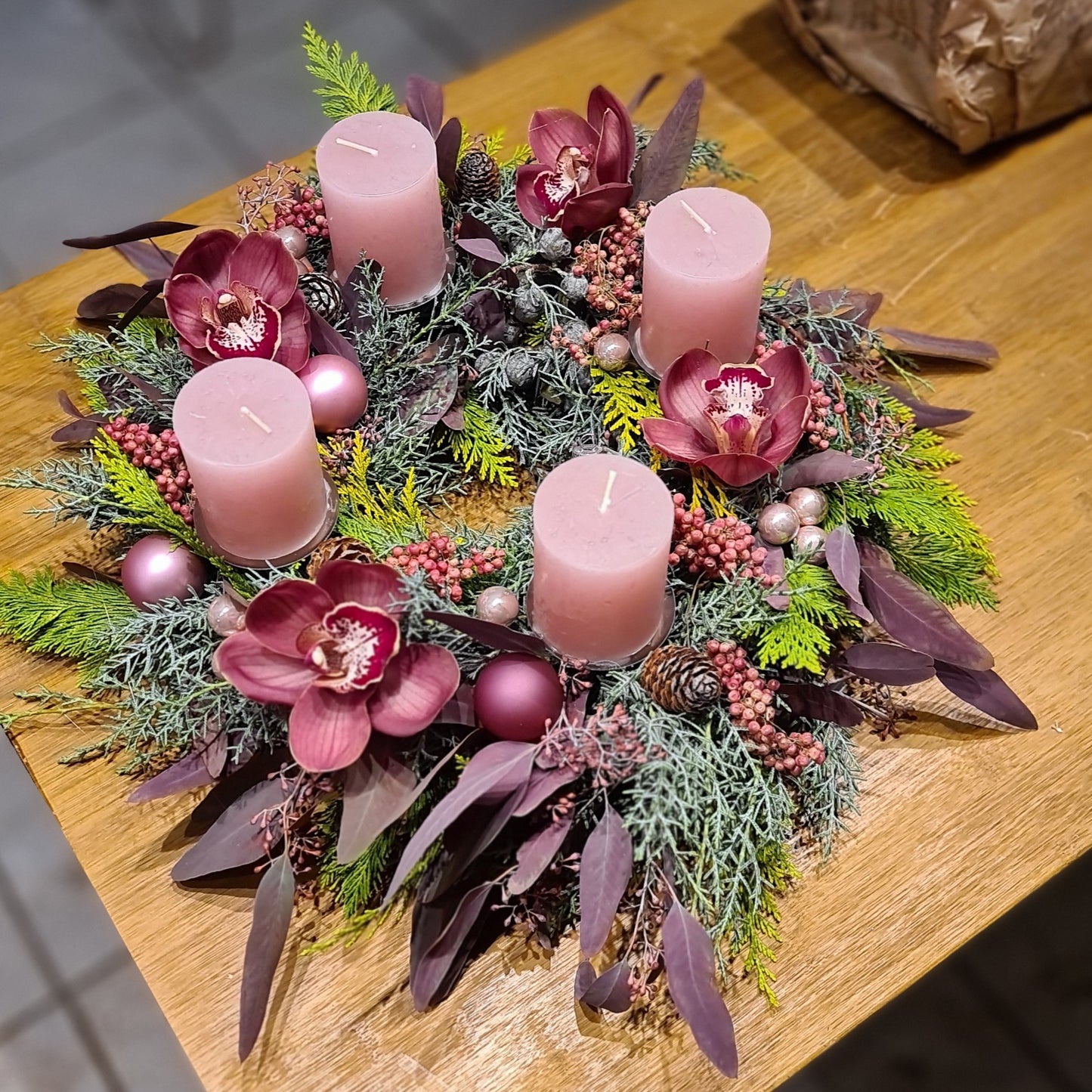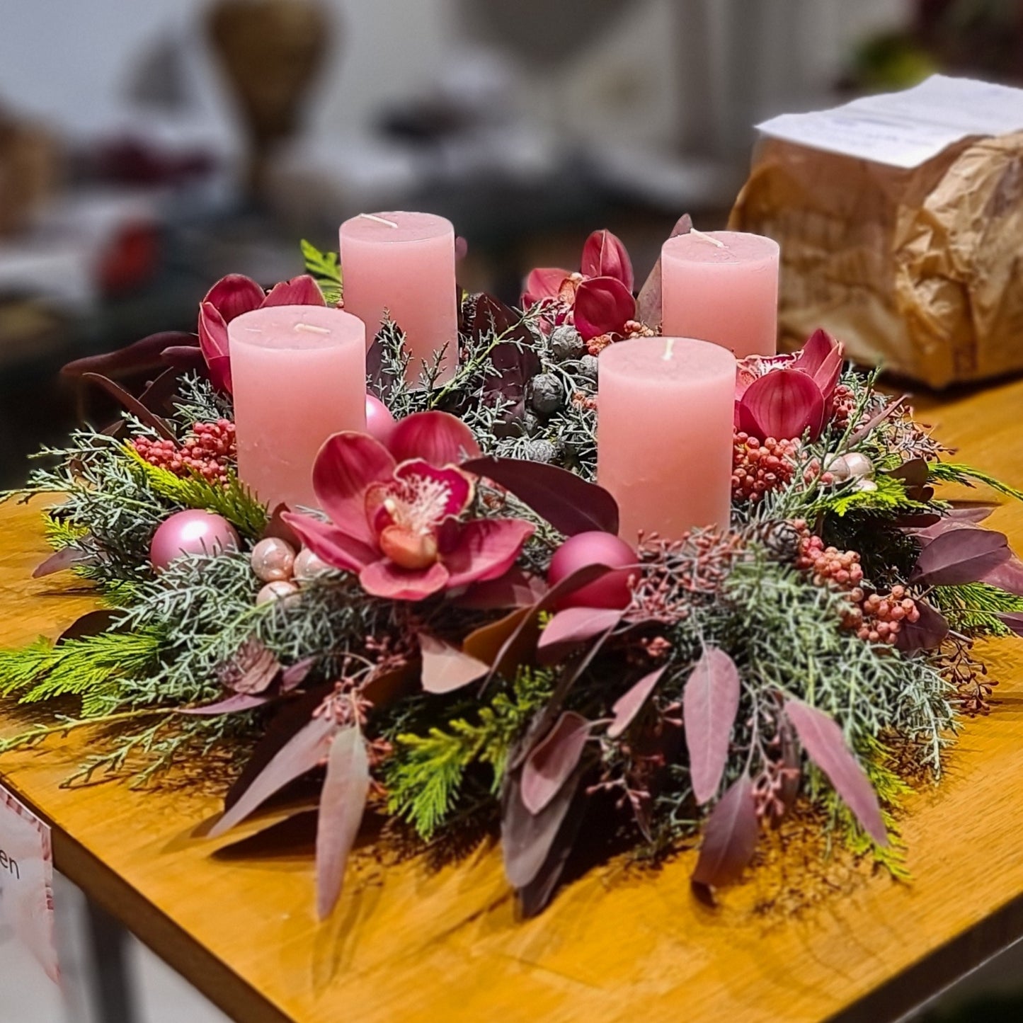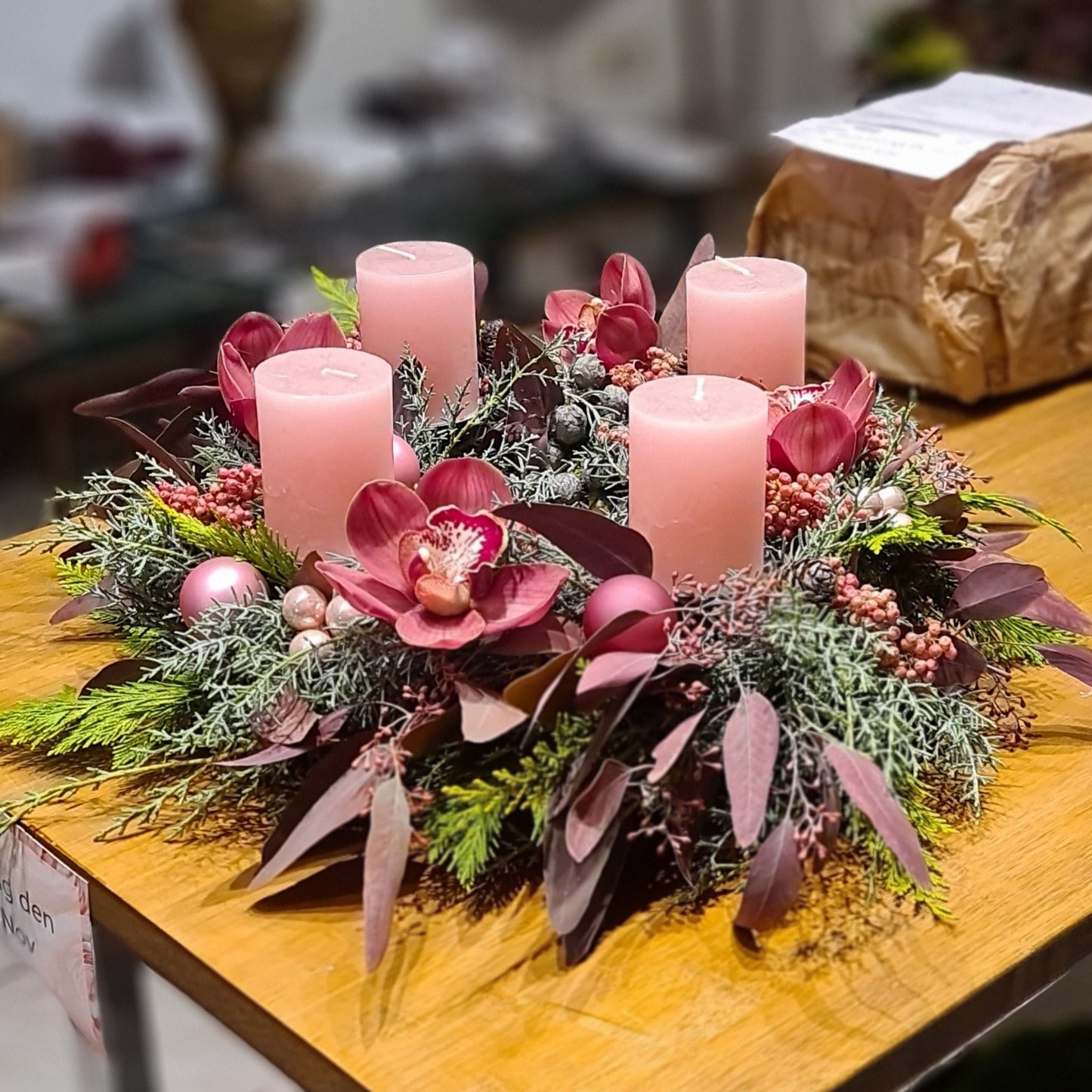 Regulärer Preis €79,00Hast Du schon mal daran gedacht, einen gesteckten Adventskranz zu machen, anstatt einen zu binden? Die Vorteile liegen klar auf der Hand: durch den Nasssteckschaum bleibt das winterliche Grün lange frisch und nadelt nicht. Außerdem kannst Du die feine Seidenkiefer und auch anderes Grün verwenden, das ohne Wasser schnell vertrocknen und nicht mehr schön aussehen würde. Seidenkiefer ist zwar ein Nadelgehölz, aber ohne Wasserversorgung und im beheizten Raum wird es schnell braun und verliert die Nadeln. Die robusten Schwarz- und Bergkiefern mit den dickeren Nadeln sind da unempfindlicher.