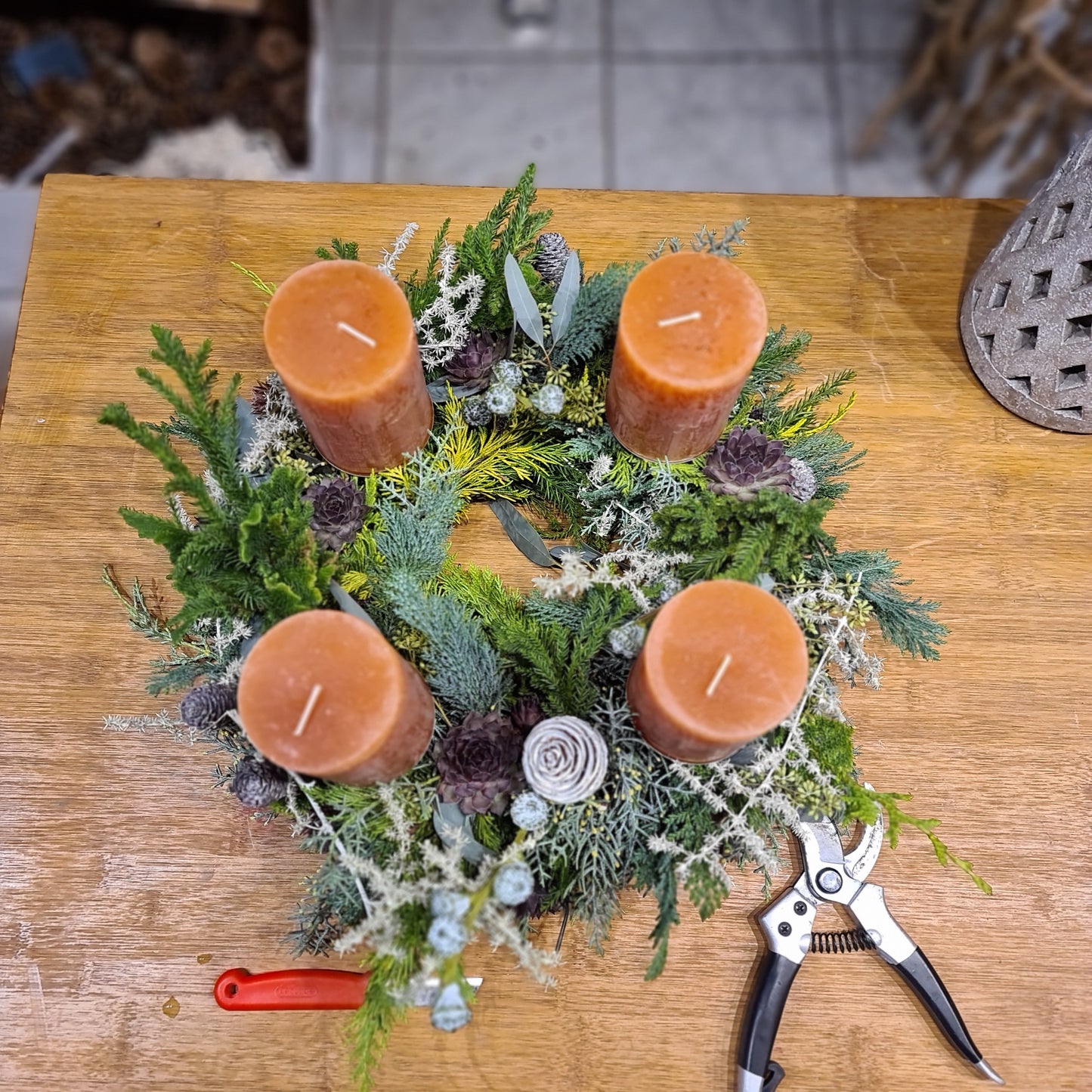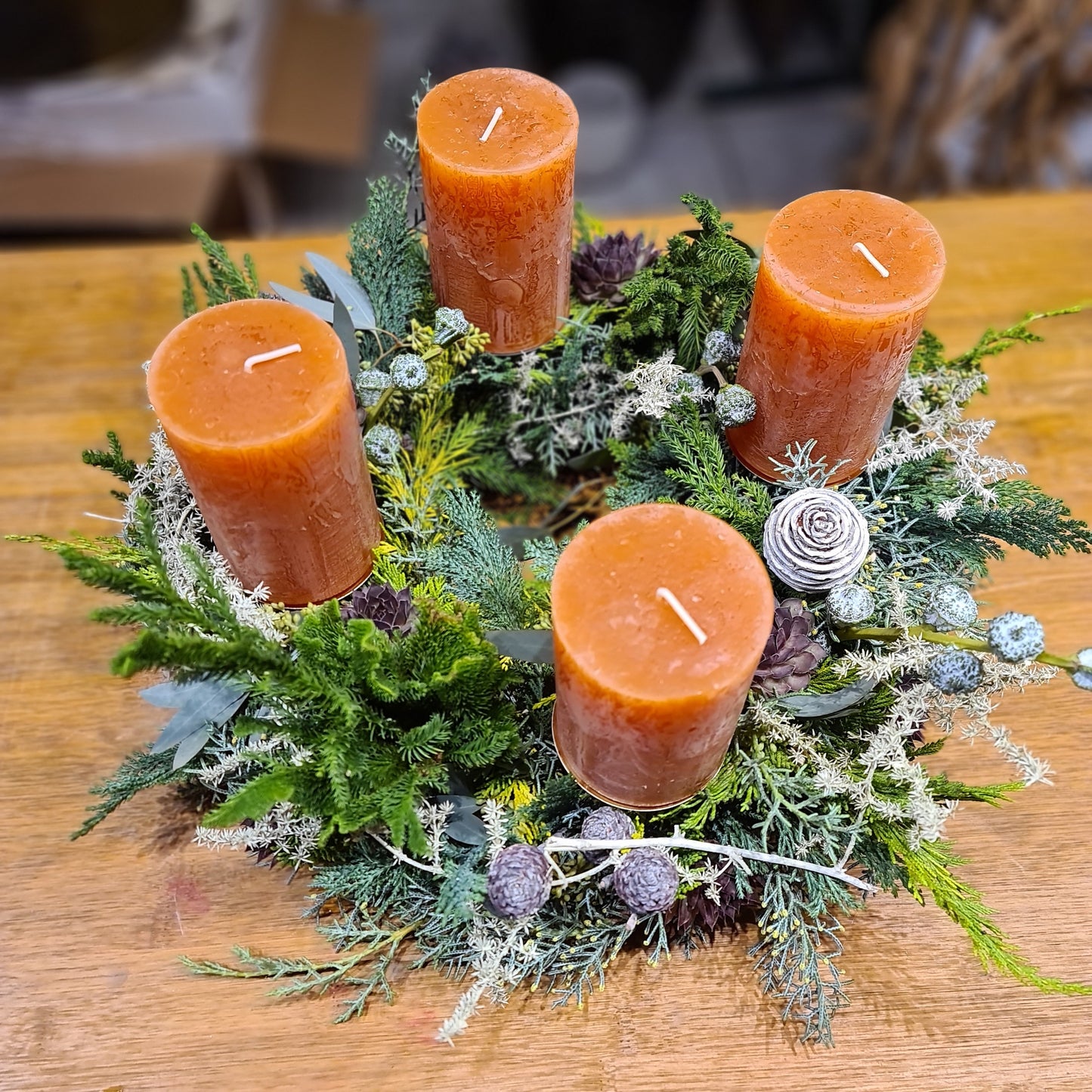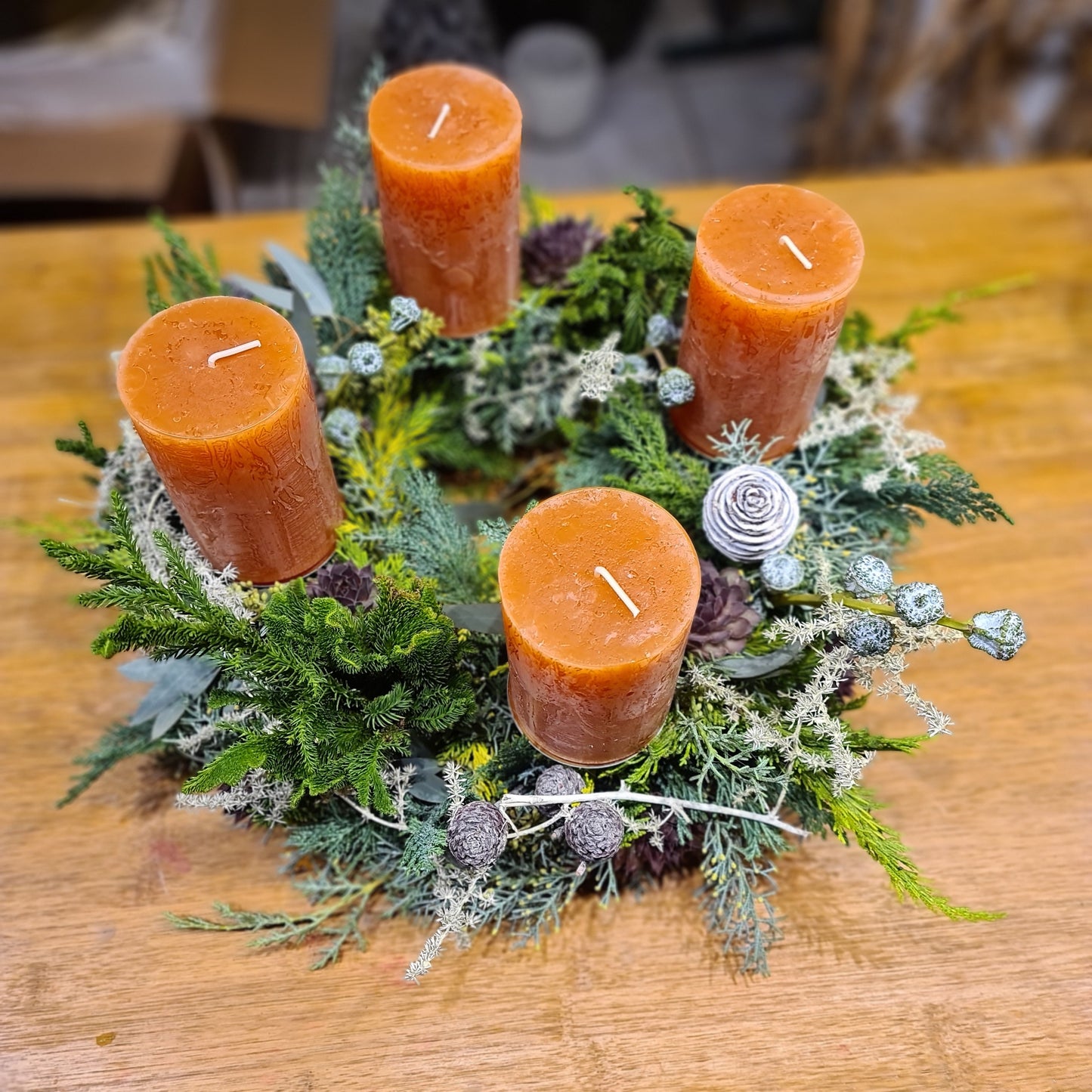 Der Adventkranz hat einen Durchmesser von ca. 40 cm.