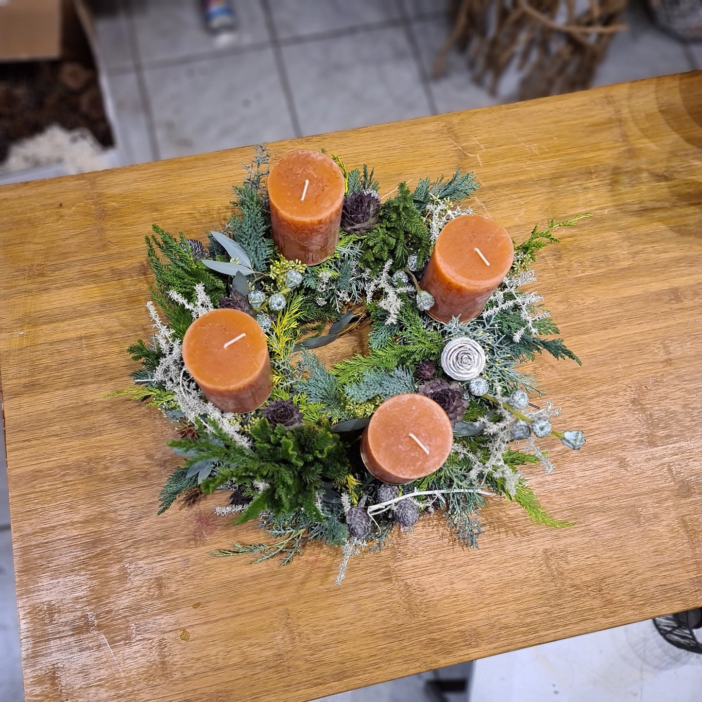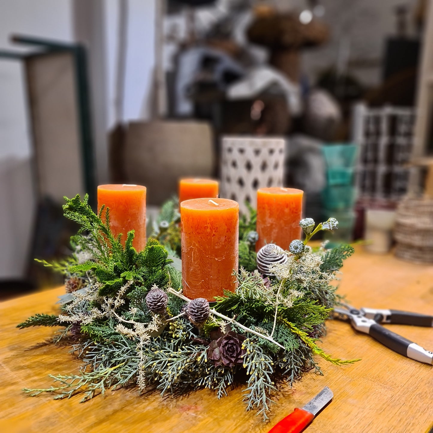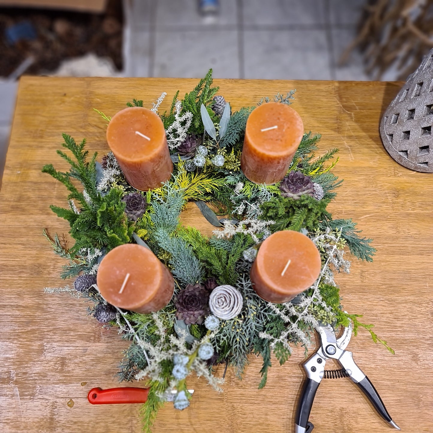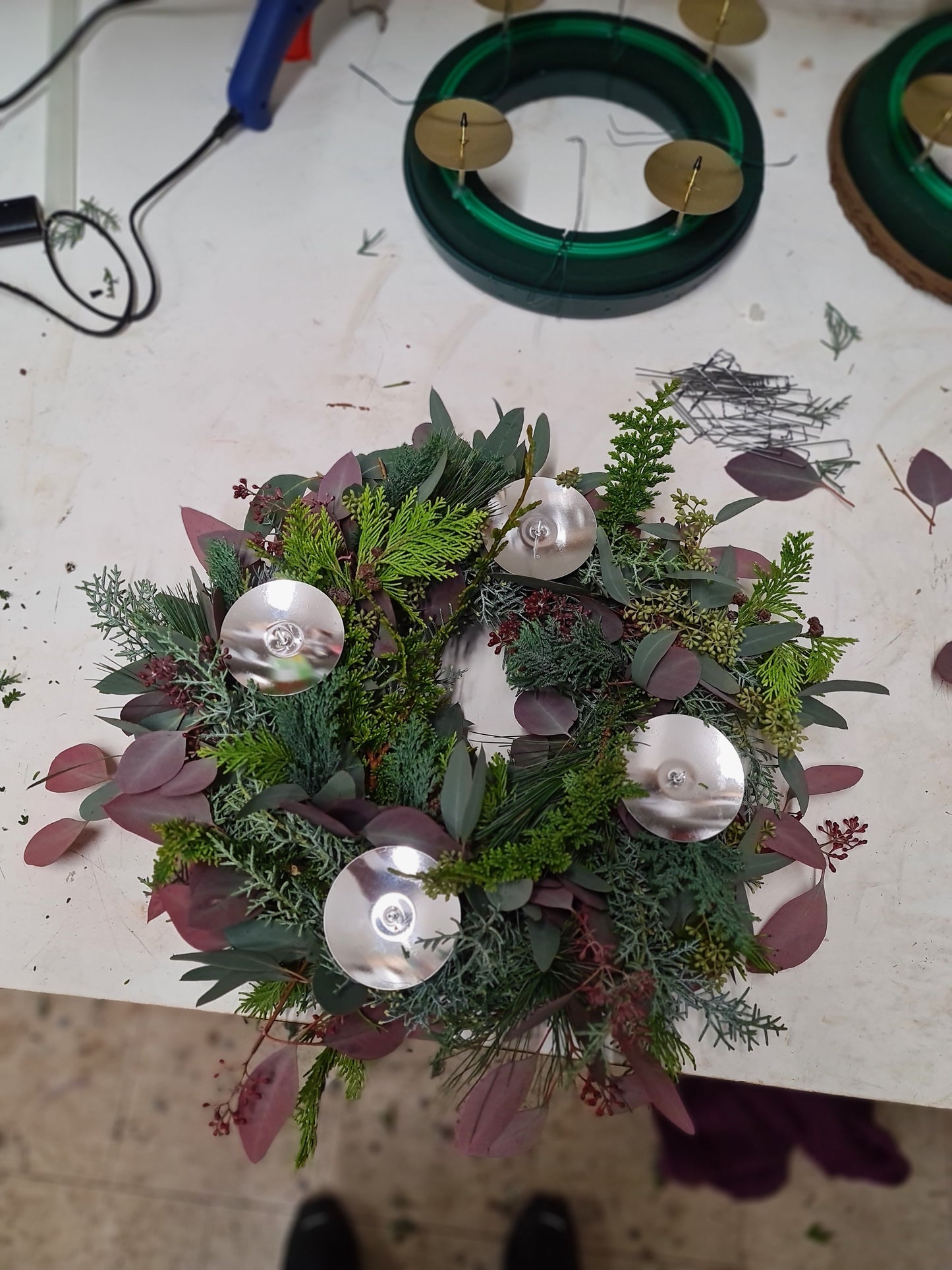 Der Adventkranz hat einen Durchmesser von ca. 40 cm.
