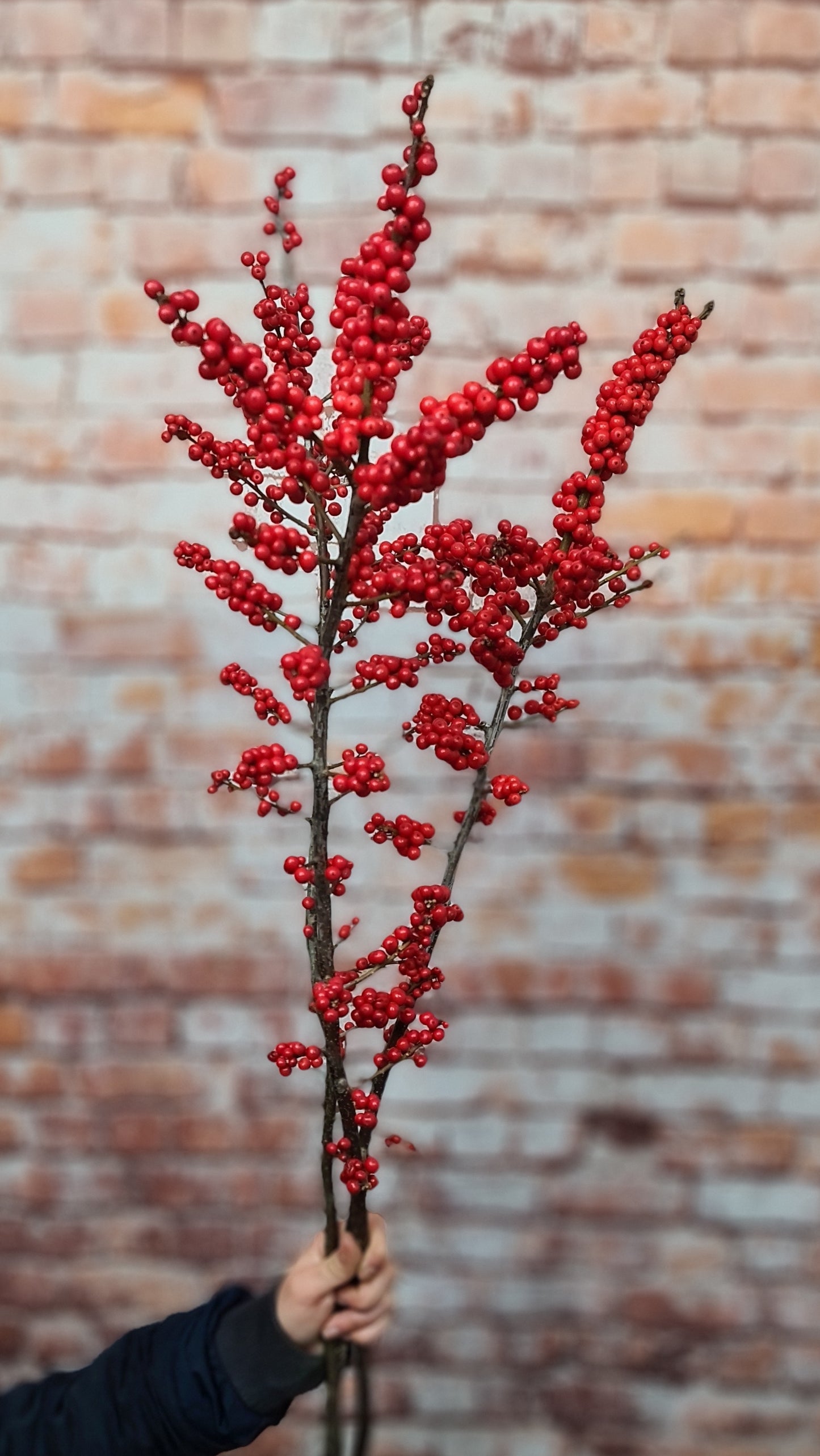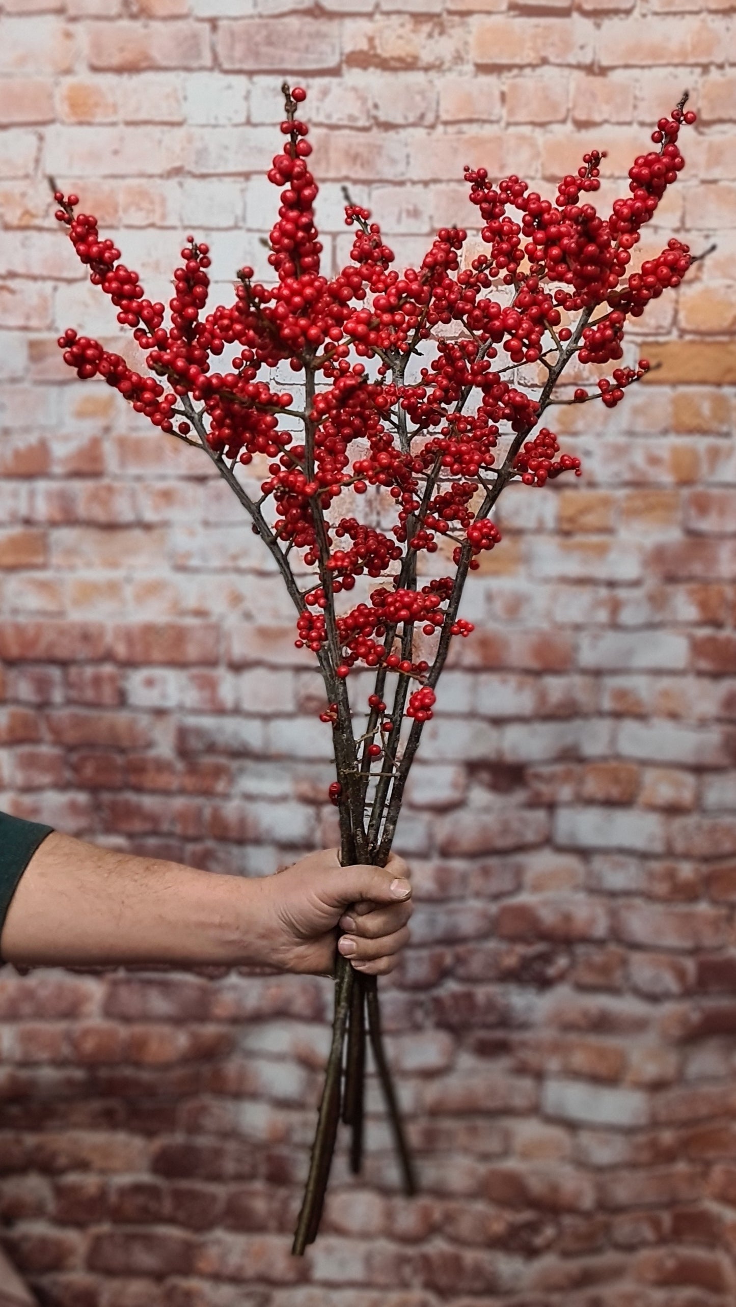 Die leuchtend roten Beeren der Ilex-Zweige bringen Weihnachtsstimmung in die Vase. Ob solo oder in Ergänzung zu Amaryllis oder Rosen, Ilex-Zweige sind klassische winterliche Zweige für die Advent-Deko.