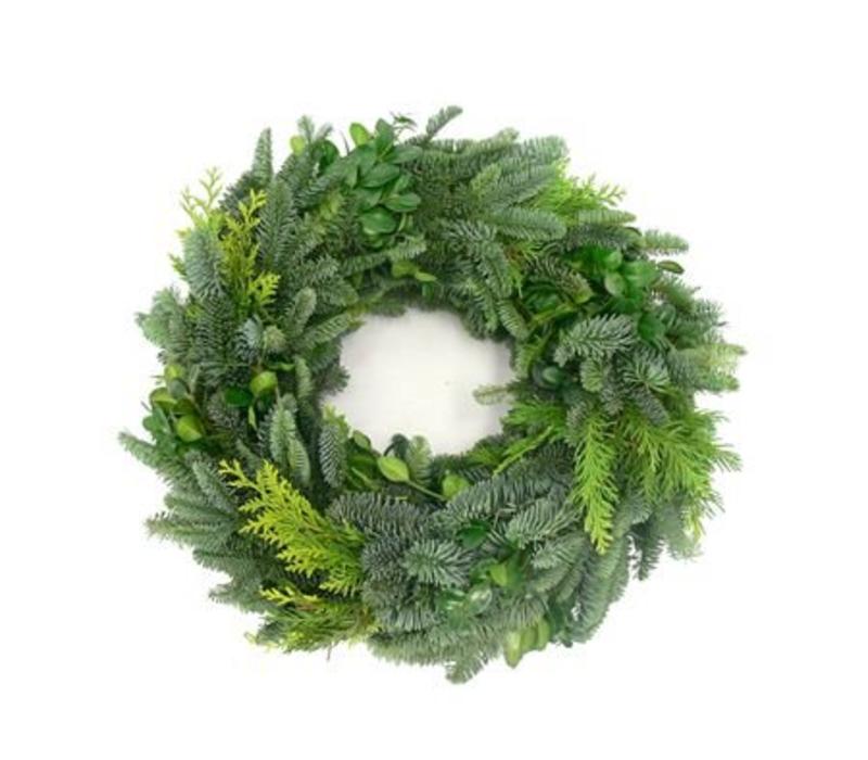 Der Adventskranz vereint die hochwertigsten und schönsten Grünkomponenten der Natur. Dazu gehören unteranderem die Nobilistanne, die Konifere und der Buchsbaum. Der Kranz erstrahlt in den verschiedensten Grüntönen und ist daher selbst ohne Dekoration ein echter Blickfang. Unser aus Deutschland stammender Traditionsträger verzeichnet einen Durchmesser von 30 cm und hat eine sehr lange Haltbarkeit, die es ihm ermöglicht die Adventswochen problemlos zu überstehen.